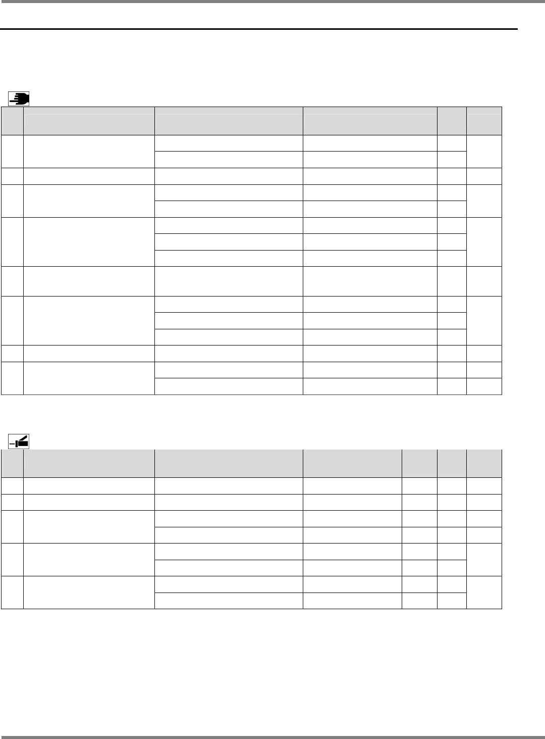 NPM-D 维修篇 1.4 各润滑脂的定期检查项目 Page 1-14 EJM1DC-MB-01M-00 1.4 各润滑脂的定期检查项目 在此将涂敷润滑脂和与润滑脂供给有 关的维护项目记载到一览表 中。 请用于指定润滑脂的名称及使用量的 确认等。 各项目的详细内容请看参照项目。 < 涂敷润滑脂 > No. 对象装置 部位 指定润滑脂 周期 [h] 参照 夹具爪 Barrierta IEL/V 140 1 吸嘴座 (16 吸嘴…