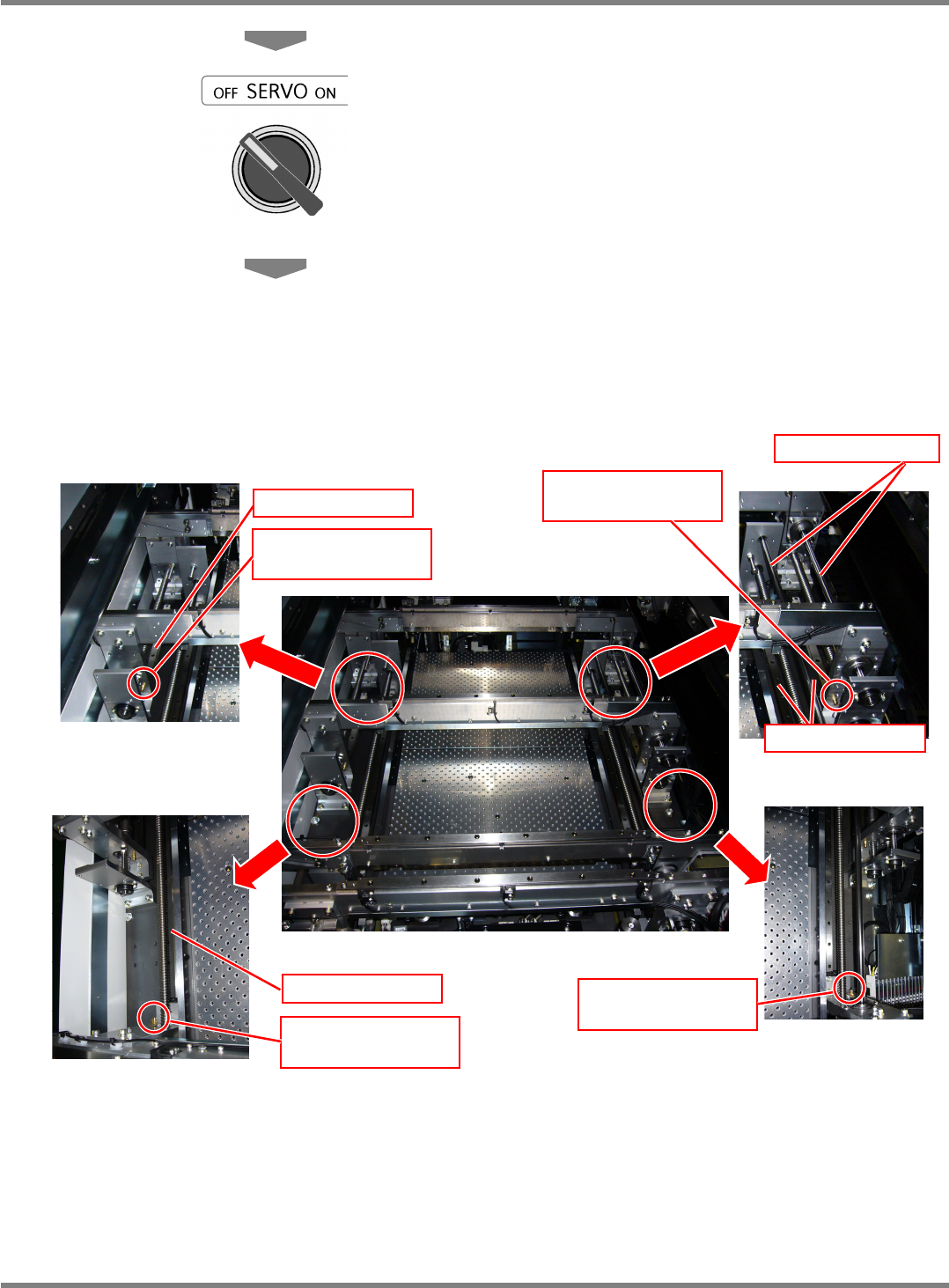 NPM-D 维修篇 5.1 对基板传送带供给润滑脂 Page 5-2 EJM1DC-MB-05M-00 5.1 对基板传送带供给润滑脂 使用工具 ― 需要时间 [min] 20 要求 该维护作业,应在主电源开关处于 ON 的状态下进行。在吸头的动作范围内进行作业 时,请务必使伺服开关处于 OFF ,并打开安全盖。 ( 打开安全盖可以切断向 XY 电机的 供电。 ) 请按照如下顺序在基板传送带的宽度 调整滚珠丝杠、线性导轨、 滚珠花键上涂…
