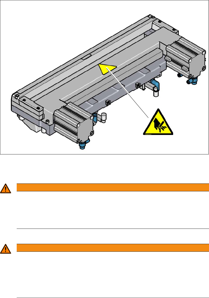 Fig. 2.2 - 12 Cartello di avviso sul lato superiore del dispositivo di taglio della cinghia