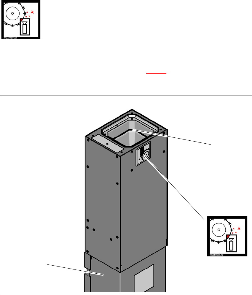 Fig. 2.2 - 17 Cartello di avvertenza "Collisione con la testa" sulla videocamera IC della TwinStar