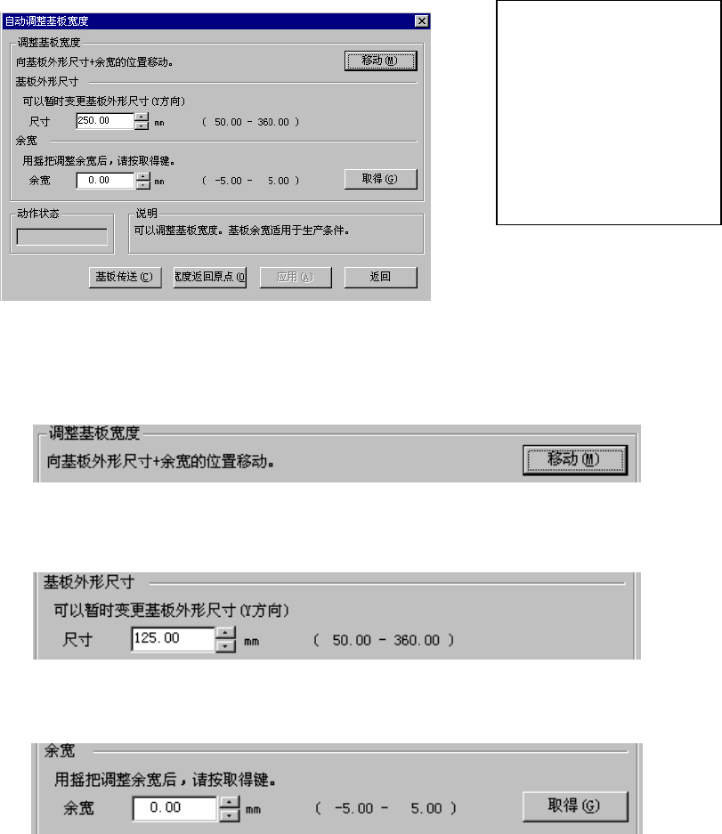 使用主体前面的手柄进行调整后,按下“取得”按钮,将当前的传送宽度与基板外形尺寸的差值作为
