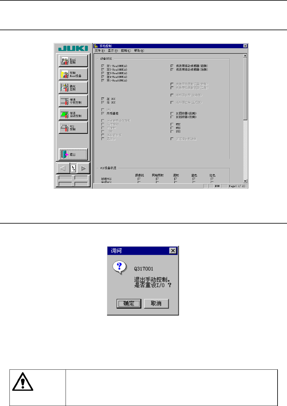 “确定”:执行I/O安全方向设定后可退出。例如,贴片头带有吸嘴时,将吸嘴返回ATC后,