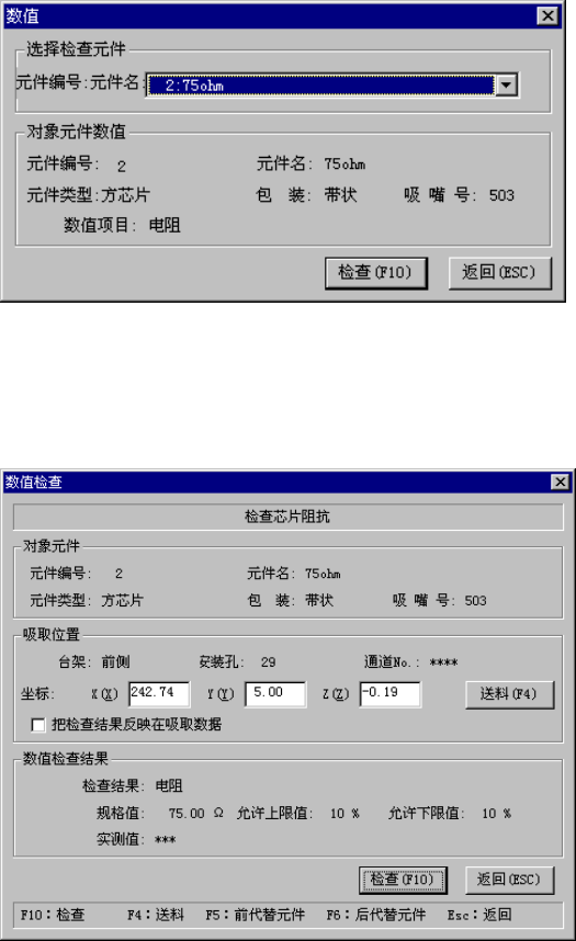 显示当前选中元件的检查项目、规格值、上限、下限。