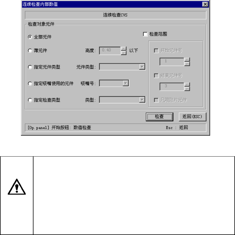 显示如下画面。设定作为检查对象的元件的条件,单击“连续检查”。进行检查。