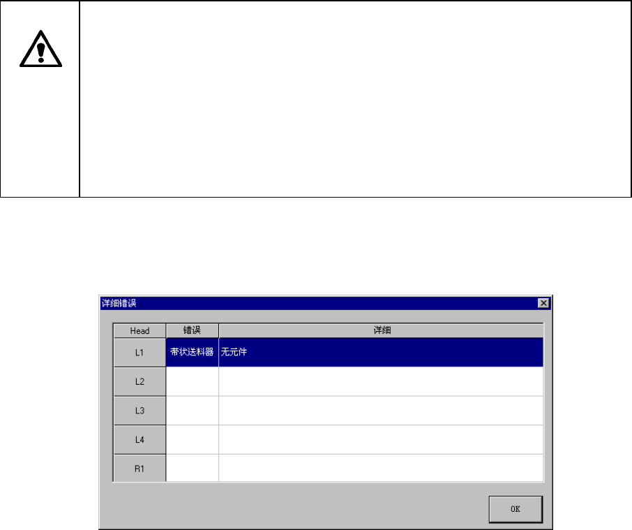 当从带式送料器、杆式送料器吸取元件时,如果发生重试超次,或当元件剩余数量为0时,则