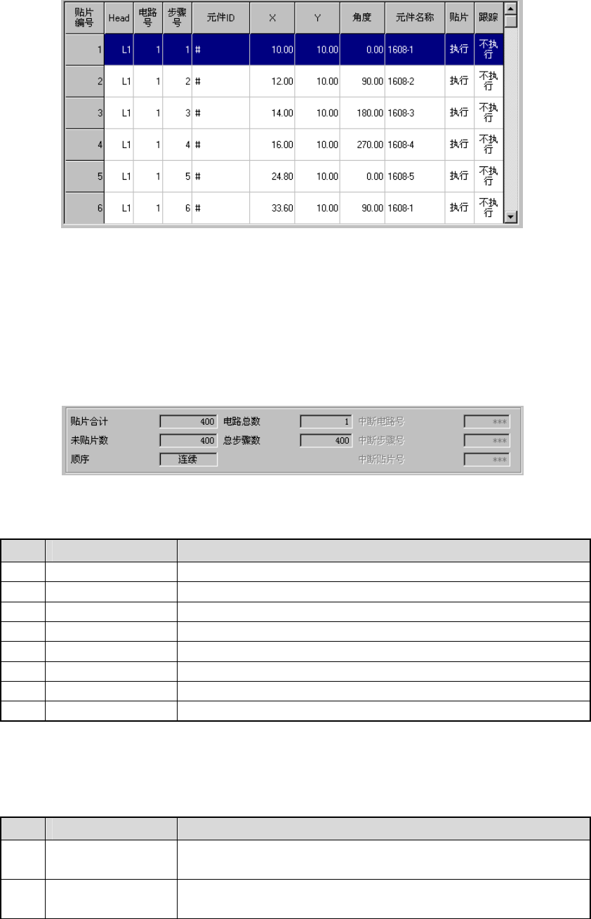 为了进行贴片跟踪,按照贴片编号顺序显示贴片元件信息。