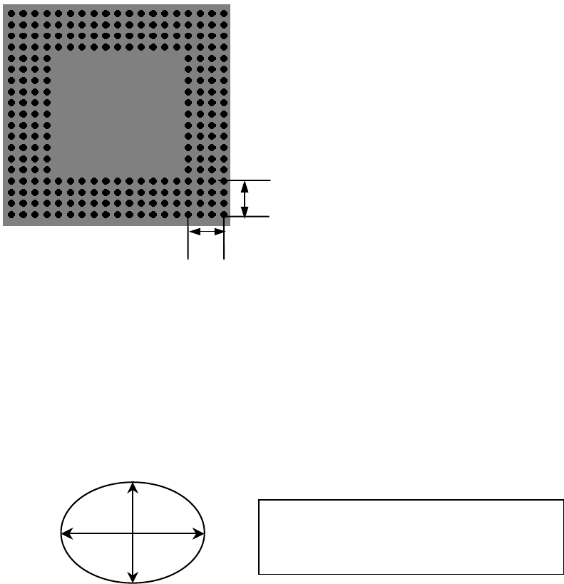 第1部 基本篇 第4章 生产程序制作 4-3-7-3-11 外围图案的球存在行的设置(仅限于 BGA、FBGA 元件) 当为外围型BGA、交错外围型BGA(外周多)、 交错外围型BGA(外周少)球形图案时,从外围开始 计算球所在的行并进行设置。 当设置了除此以外的图案时, 在一览表画面中“行数”显示为“* ”, 表格画面中则不显示。 4 4 ■ 该例中的 球存在行数为 4 。 图 4.3.7.3.11.1 外围图案 4-3-7-3-12…