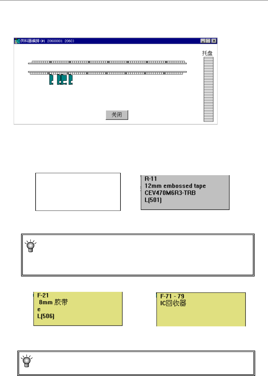当在 IC 回收带位置上指定送料器被时,送料器将在 IC 回收带上重叠显示。请指定位