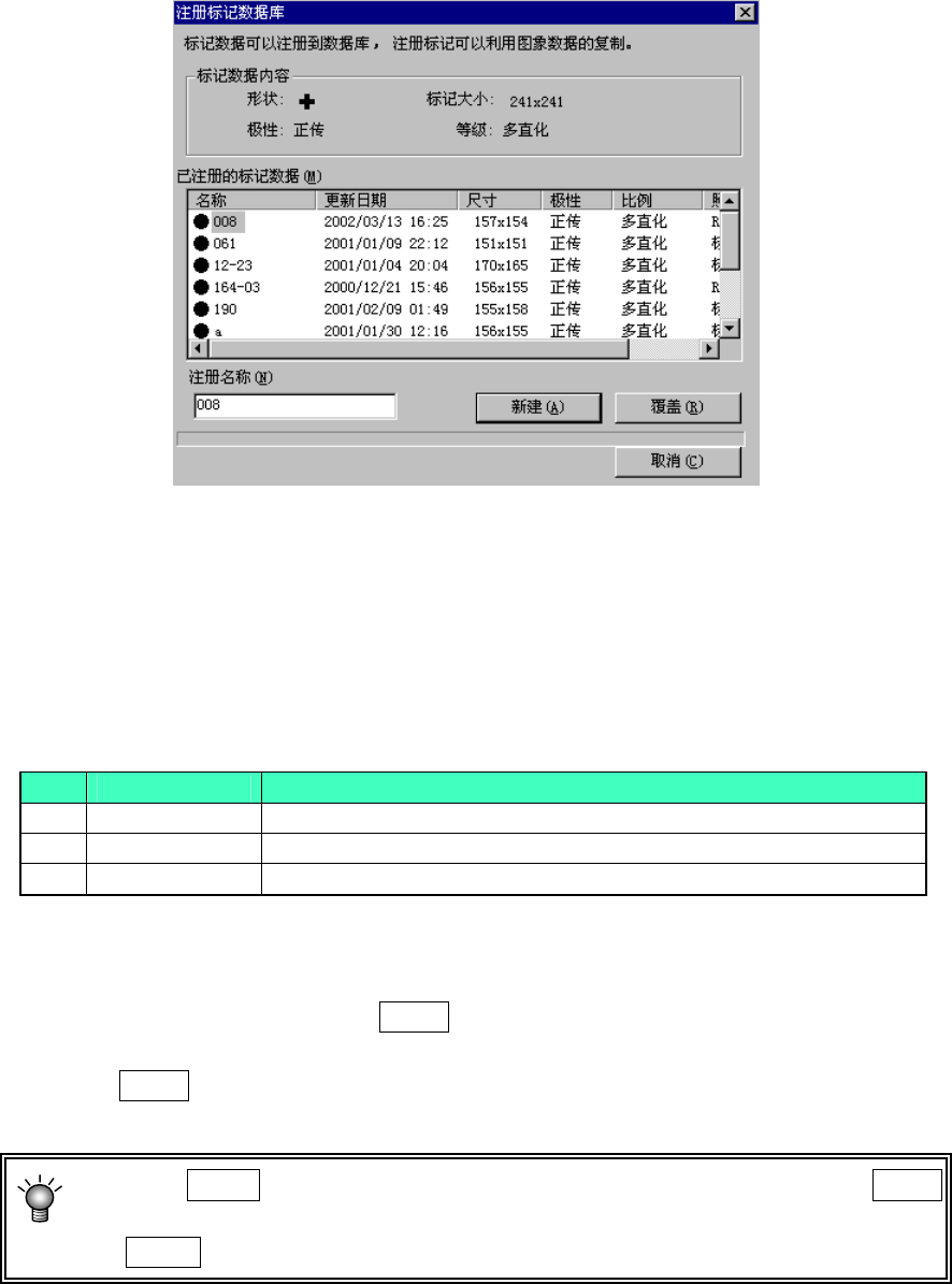 将示教数据新登录进标记数据库中时,请输入登录名称,然后按下<新建>按钮。