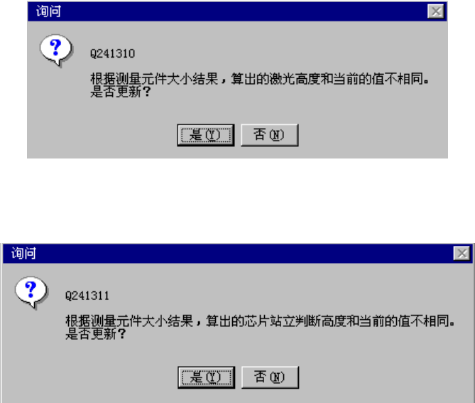 当根据尺寸计算出的激光高度或芯片站立判定高度与原来的值不同时,显示如下的信息。