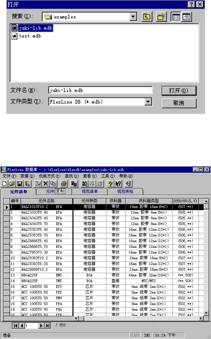 过程栏从画面上消失,新数据库文件的数据显示在Flexline数据库窗口的元件一览表上。