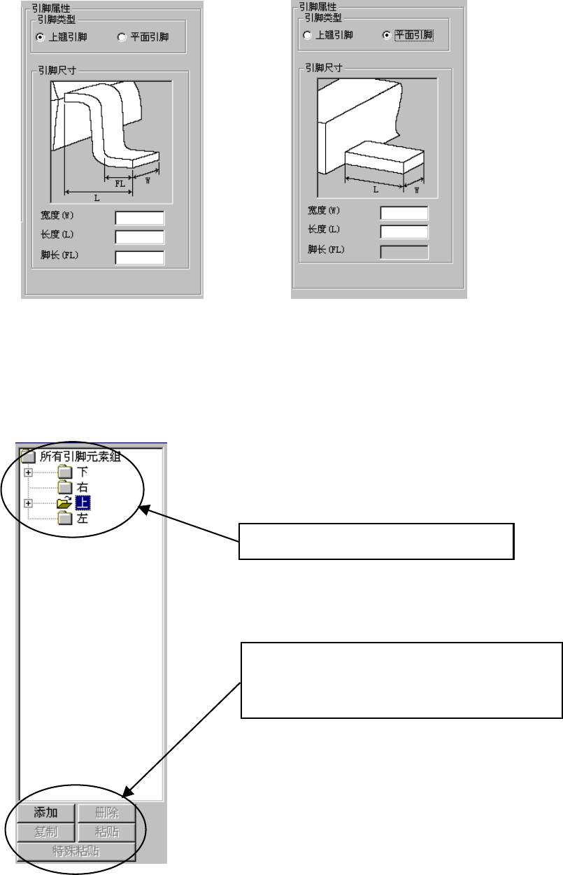 图 6-4-3-5 引脚特征(鸥翼形引脚) 图 6-4-3-6 引脚特征(平板引脚)