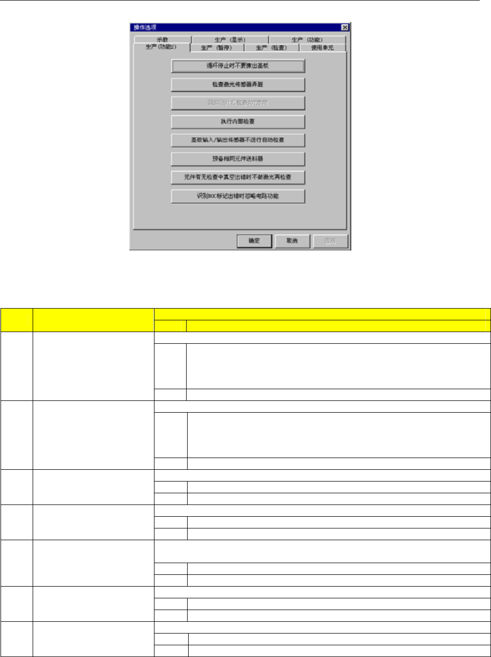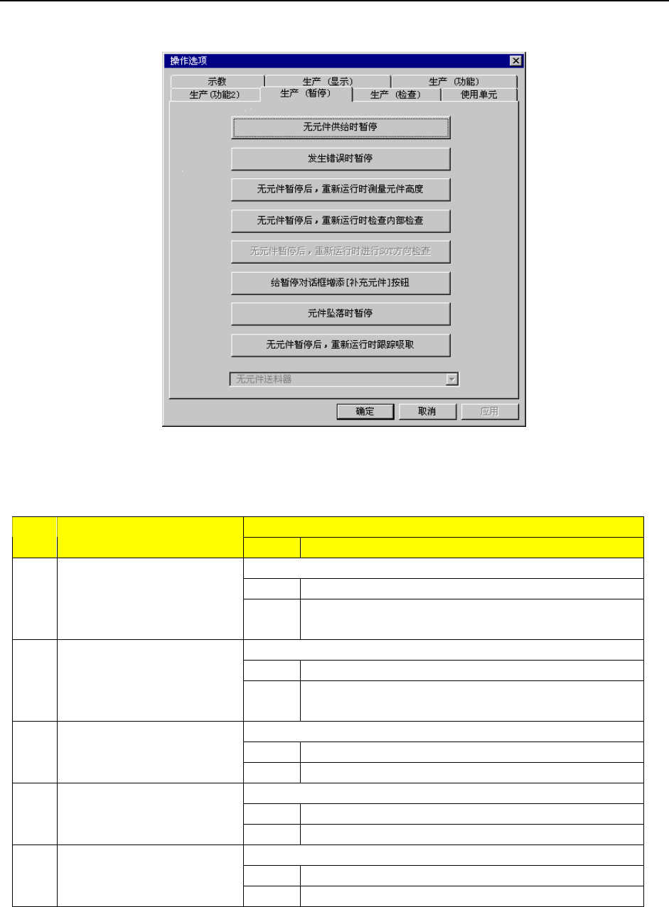 表 7-2-6 生产中暂停设定项目的细节和内容