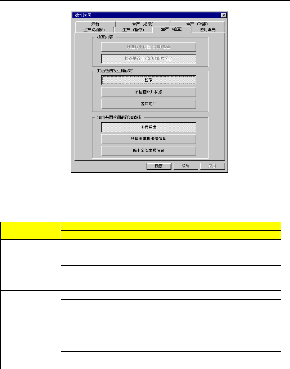 表 7-2-7 生产中检查选项设定项目的细节和内容