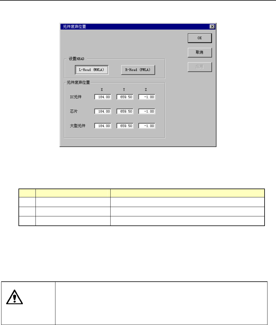 · 不可以将左贴片头设置到右侧元件废弃位置。此外,也不可将右贴片头设