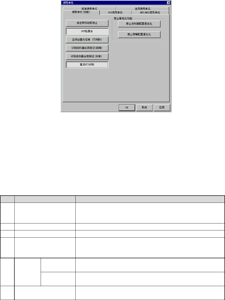 选择“使用单元(功能)”标签,则显示如下图的使用单元(功能)设置画面。