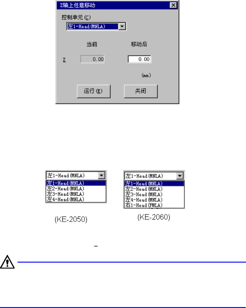 移动到任意坐标时,显示Z任意坐标移动画面。
