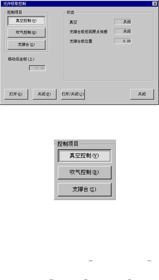从菜单栏中选择“控制”/“传送系统”/“元件吸取控制(P)”,则显示如下的基板吸取控制