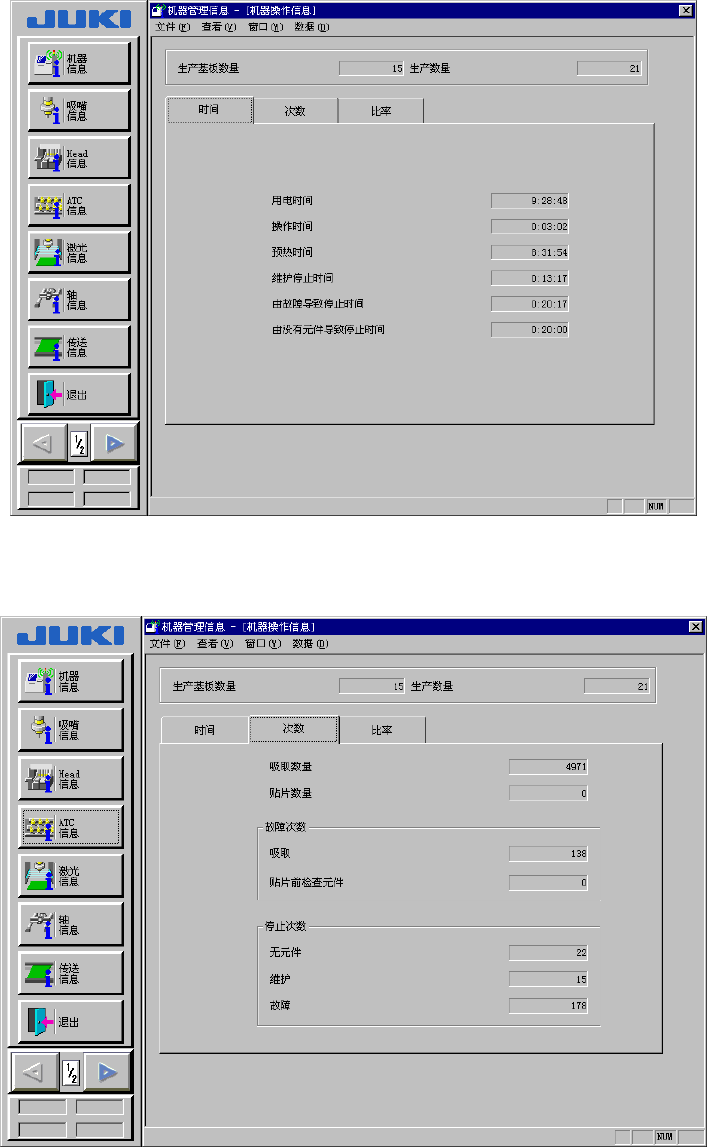 显示机械的运行时间(累计基板生产时间等)、吸嘴拆装次数等设备固有的运行信息。