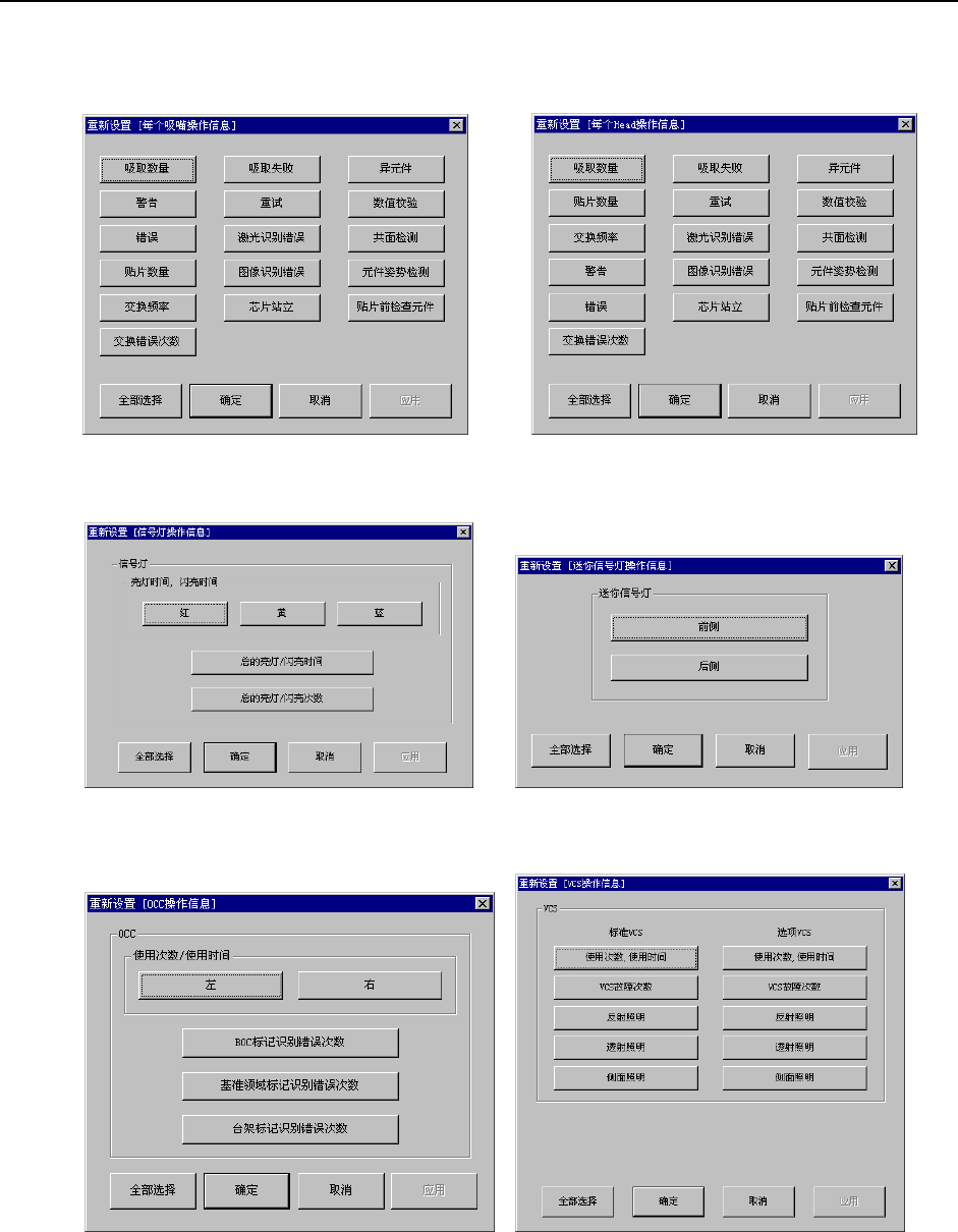 图 10-5-16-5 吸嘴作业信息重新设置画面 图 10-5-16-6 贴片头作业信息重新设置画面