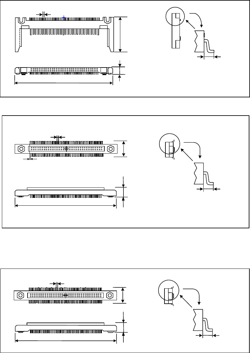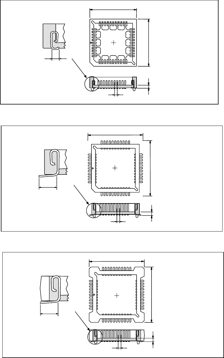 第 2 部 功能详细篇 第1 3 章 程序补充 1 3-7 · J 形引脚插 座 外型尺寸 横 外型尺寸 纵 元件高度 引脚间距 引脚长度 · 鸥翼式插座 外型尺寸 横 外型尺寸 纵 元件高度 引脚间距 引脚长度 · 带减震器的插座 外型尺寸 横 外型尺寸 纵 元件高度 引脚间距 引脚长度