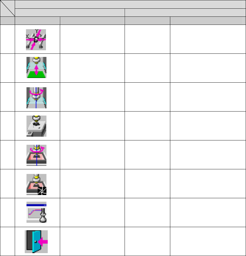 第 1 部 基本编 第 1 章 设备概要 1-3-2-6 装置运行信息 换页 第一页 第二页 No. 图标 名称 图标 名称 1 机器运行信息 HMS 运行信息 2 各吸嘴运行信息 信号灯运行信息 3 各贴片头运行信息 迷你信号灯控制 4 ATC 运行信息 OCC 运行信息 5 激光运行信息 VCS 运行信息 6 轴运行信息 非同步运行信息 7 传送运行信息 SOT 运行信息 8 退出 返回桌面。 退出 返回桌面。 1-61