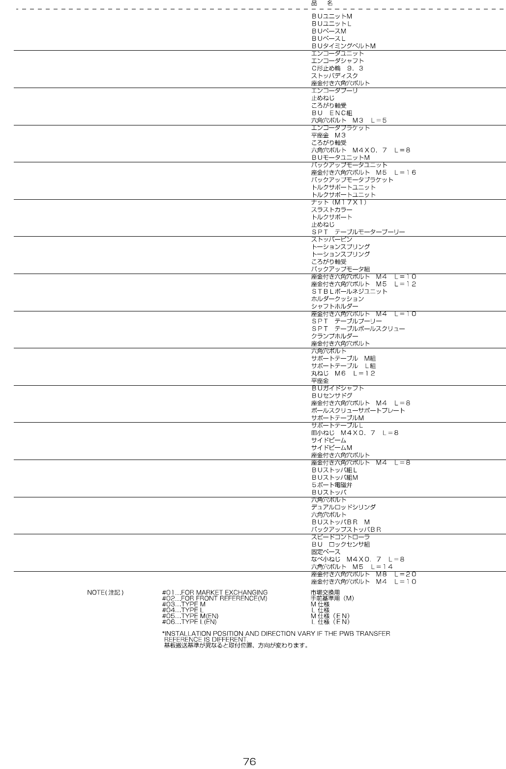- - REF.NO NOTE PARTNO DESCRIPTION Qty 1 #03 401-34642 BU_UNIT_M 1 2 #04 401-34644 BU_UNIT_L 1 3 #03 401-06043 BUBASEM (1) 4 #04 401-06045 BUBASEL (1) 5 #03 401-06047 BUTIMINGBELTM (1) 6 400-939…