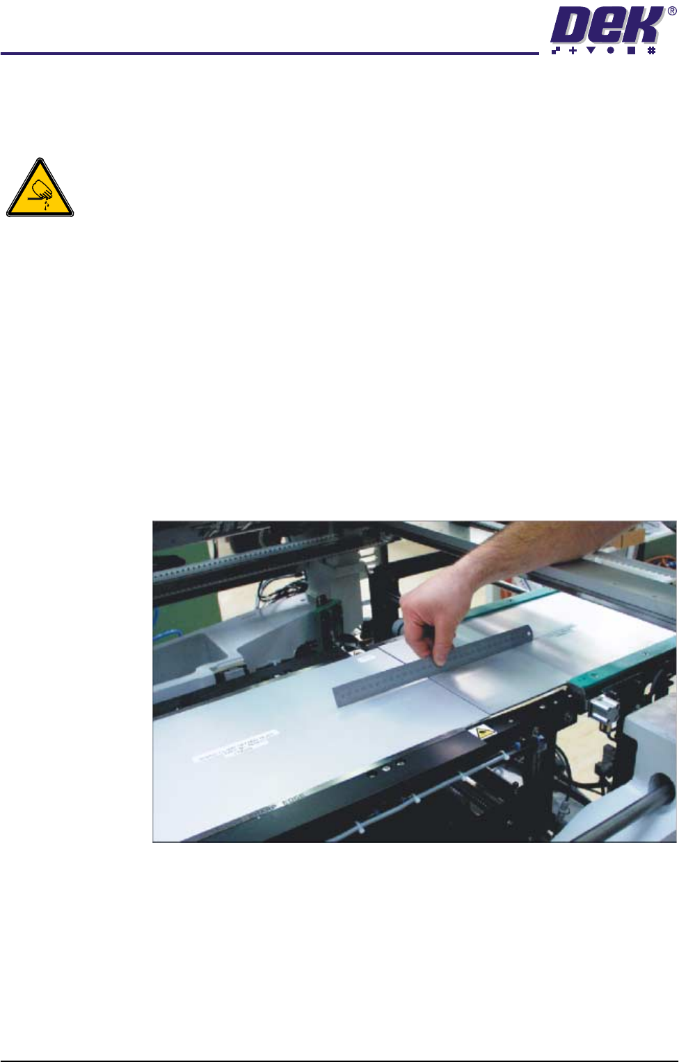 8. Carefully adjust the height of the auxiliary conveyor rails to the print station
