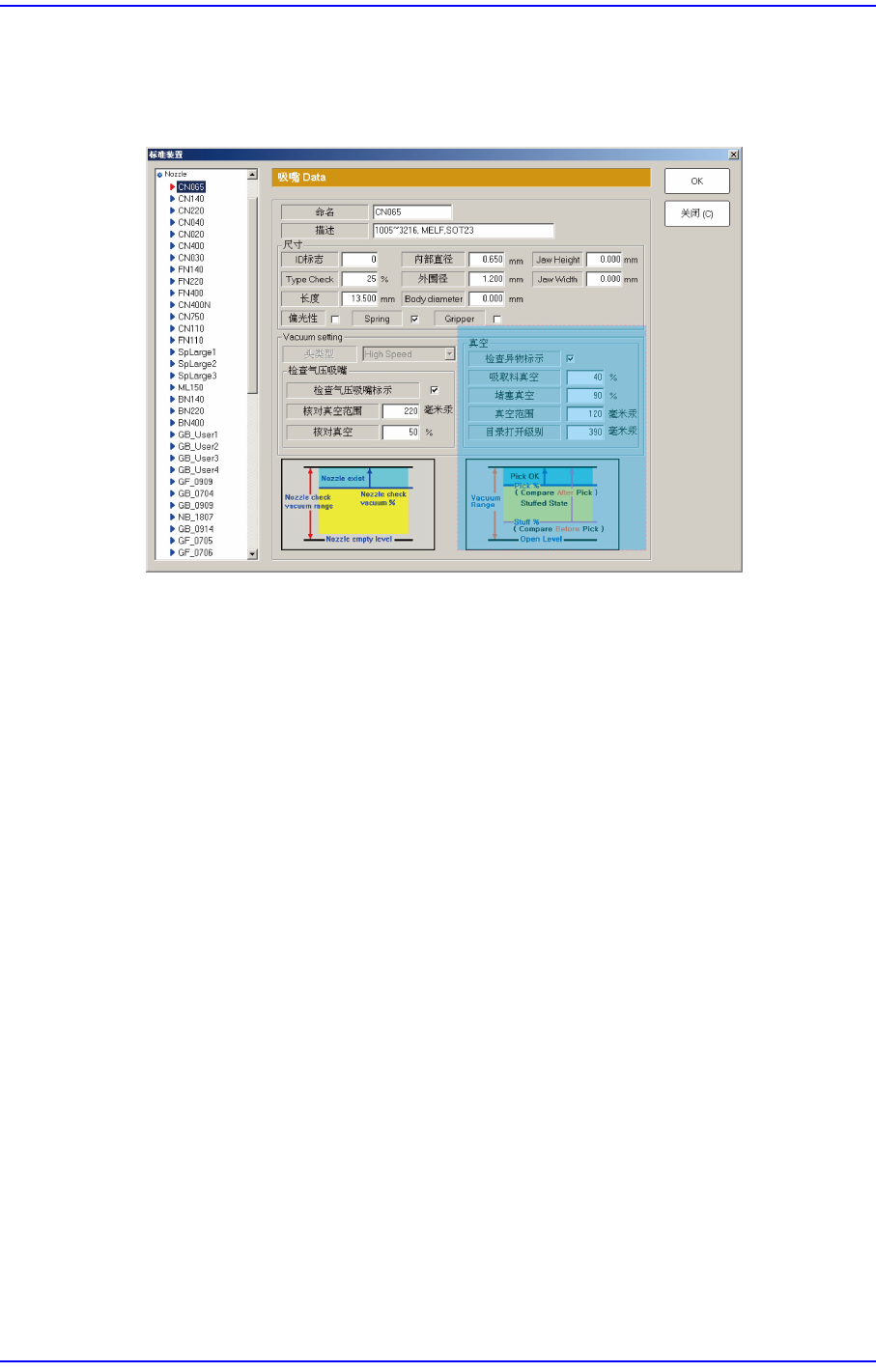 项。之后在’Nozzle’ 对话框中确认Vac uu m 值。