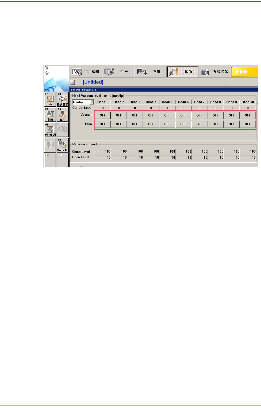 确认Vacuum传感器后在Diagnosis 菜单的 Vac uu m 对错误发生磁头执行真空检