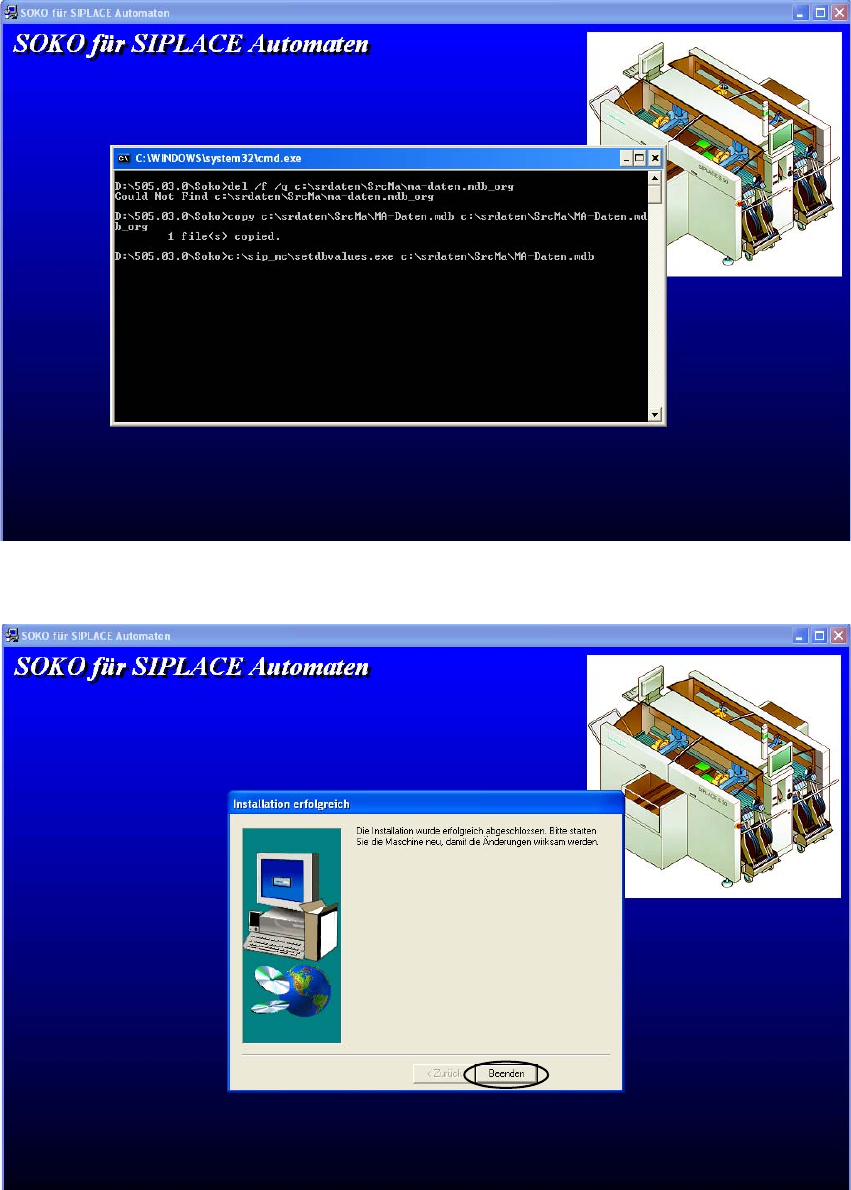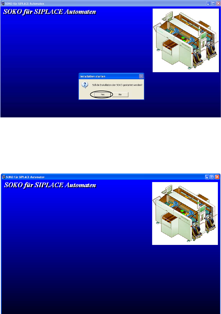 SOKO 1 Montageanleitung SOKO Wechseltisch anstelle de s MTC2 (SW 505.03, 505.03 SP 1, 505.04) SIPLACE HF-Serie Ausgabe 03/2007 15 : Bestätigen Sie den S t art der Inst allation mit K licken auf „YES“. 1 1 : Anschließend …