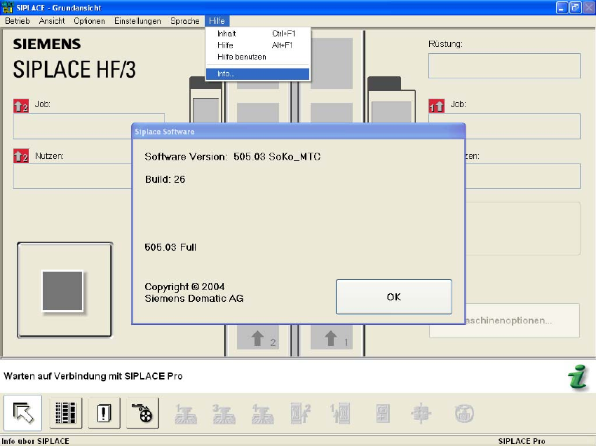 SOKO 1 Montageanleitung SOKO Wechseltisch anstelle de s MTC2 (SW 505.03, 505.03 SP 1, 505.04) SIPLACE HF-Serie Ausgabe 03/2007 17 Nach dem Neustart kann in der GUI unter Hilfe -- > Info die Softwarevers ion kontrollie…