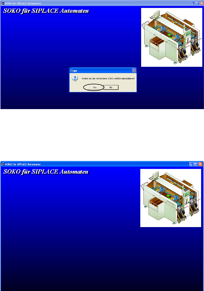 SOKO 1 Montageanleitung SOKO Wechseltisch anstelle de s MTC2 (SW 505.03, 505.03 SP 1, 505.04) SIPLACE HF-Serie Ausgabe 03/2007 21 : Bestätigen Sie Eingabe mit „Ja“, wenn sie korrek t ist, ansonsten klicken Sie „Nein“ und…