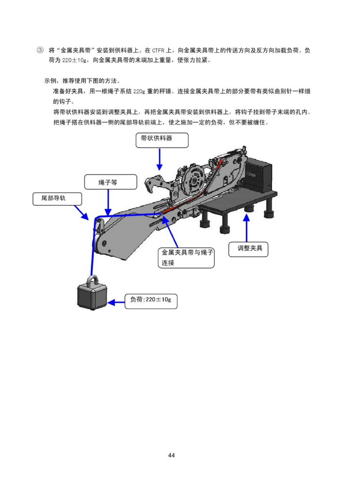 将带状供料器安装到调整夹具上