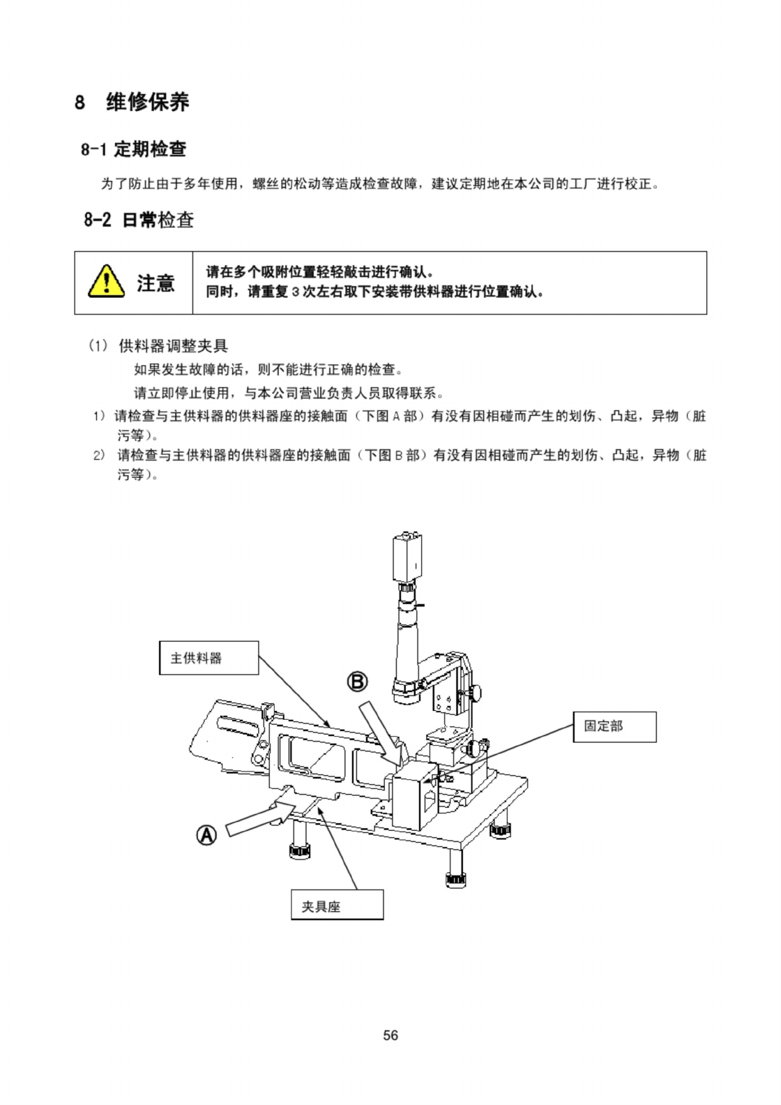 请检查与主供料器的供料器座的接触面