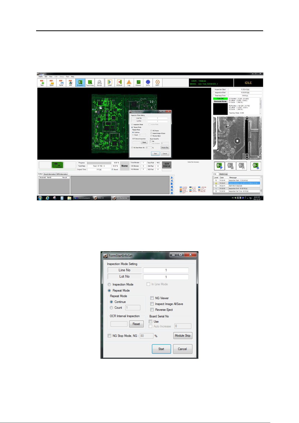 4 . 检测软 件 4.3 . 自动 检测模式 4.3.2. 自 动检查 选项 设 定自 动检测 的 选项 检测选项 窗口 功能 使用方法 说 明 Line No 选择 后 输 入 产线线别设 定 Lot No 选择 后 输 入 Lot 生 产 批次 Inspection Mode 打勾 选择 Load 检测 Unl oad 依序 进 行 Repeat Mode 打勾 选择 Load 检测 Unl oad Back …