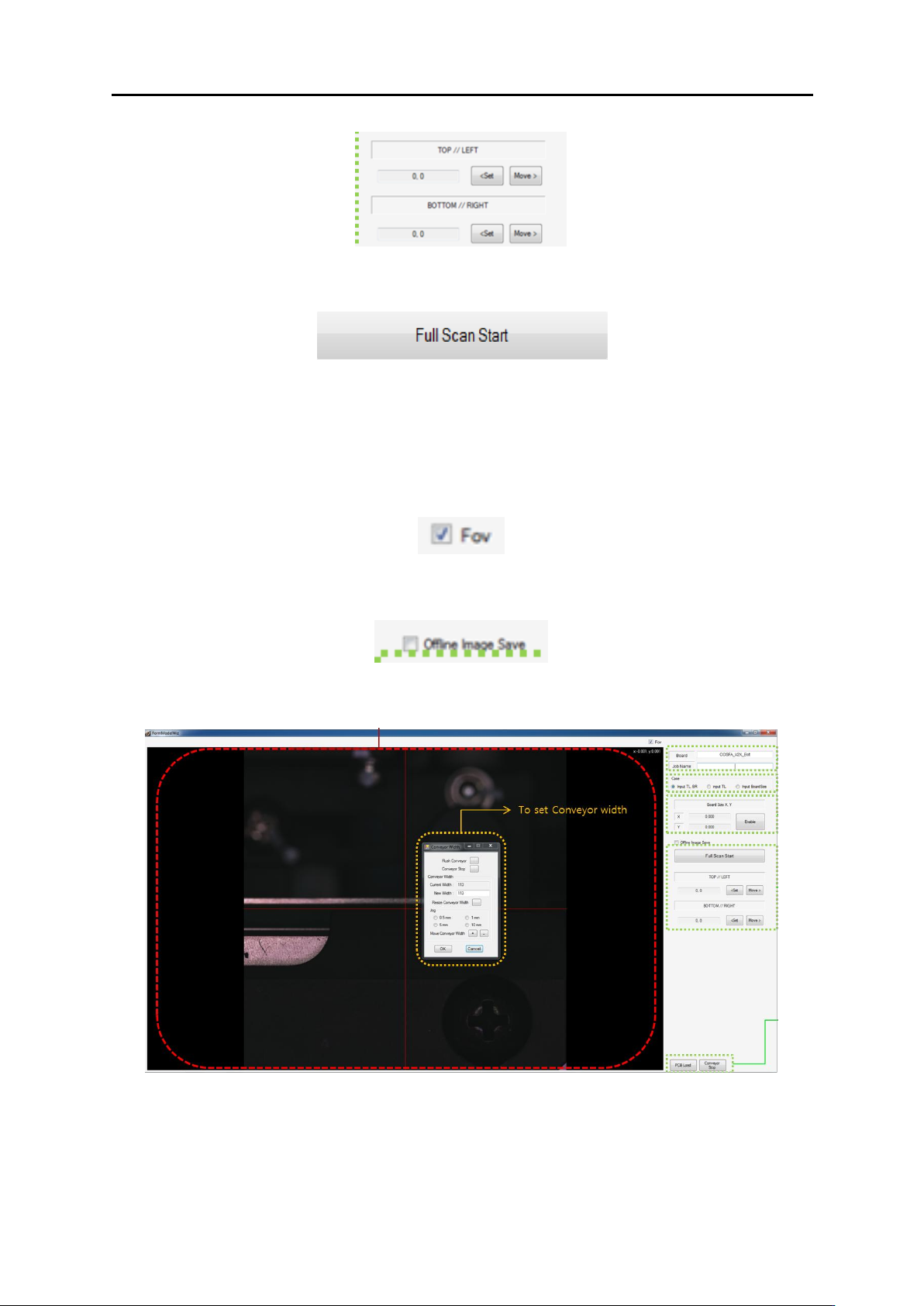 5 . 教学 5.1. 新程 序生成 5.1.1.4. 扫图 (Full Scan) Figure. 扫图 点 击 <Full Scan S tart > 将进 行 扫图动 作。点 击 < Finish> 结 束 扫图 。 如果 扫图设 定 错误 可以点 击 < FOV> 进 行重新 设 定以及 扫图 。 为 了离 线调试 程序 进 行离 线扫图 勾 选 如下 选项 。 <Offline Ima…