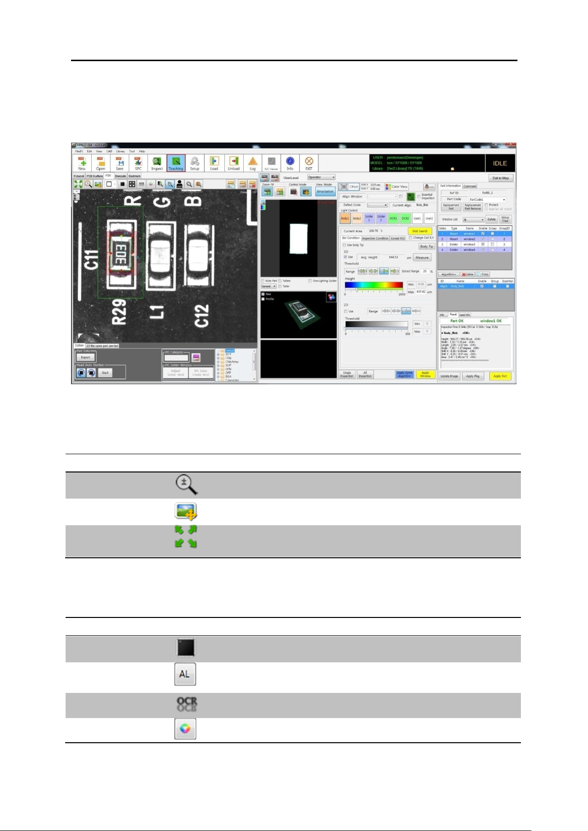 3 . 检测软 件构造 3.4. 使用者环境 轴 移 动 选择 在 画 面上所点 击 的位置 将 成 为 中心移 动 坏板 选择 选择 坏板 选择