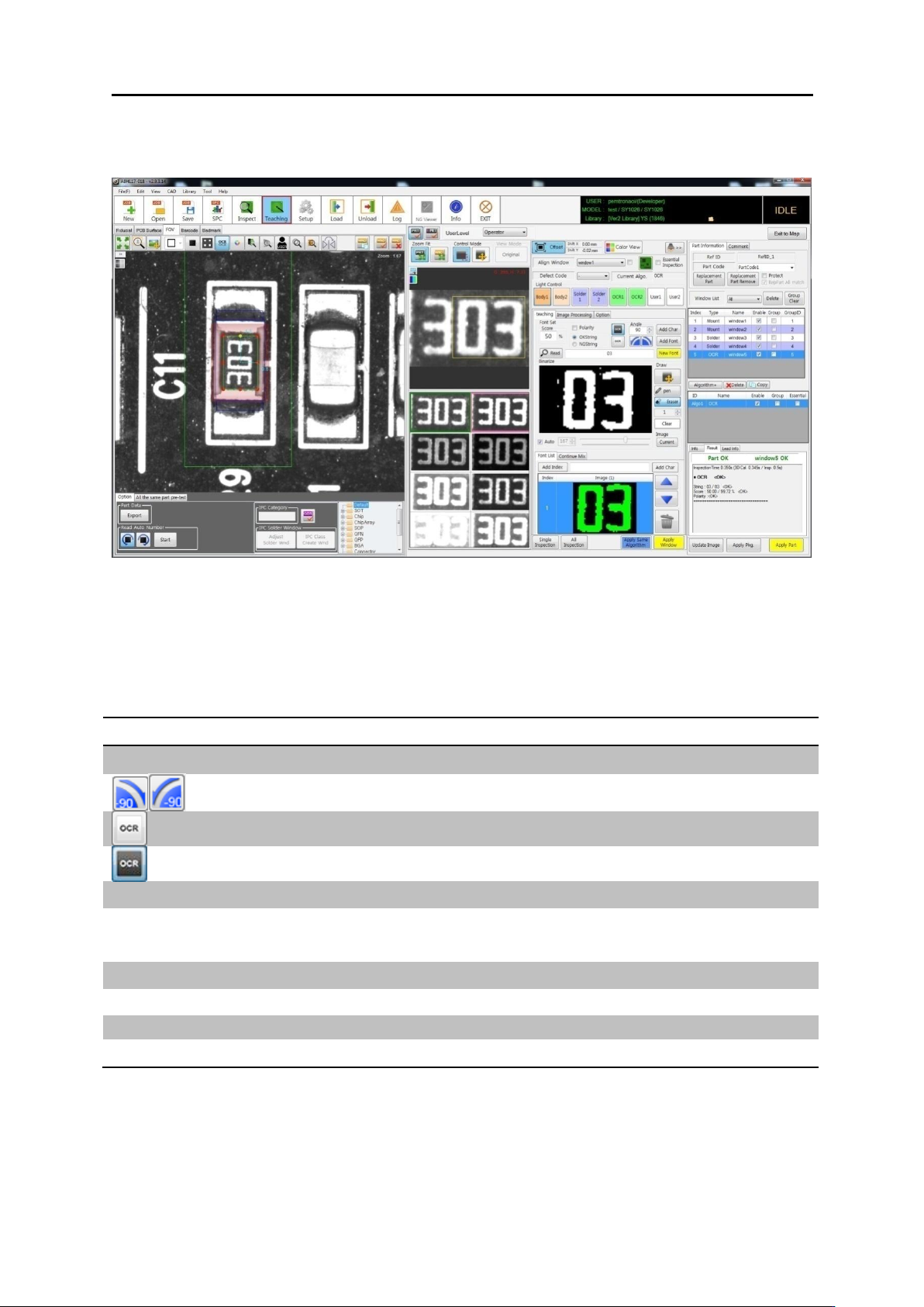 3 . 检测软 件构造 3.4. 使用者环境 类 型 说 明 Mode 设 定 - Upper Range : 设 定位置以上 为 OK - Lower Range : 设 定位置以下 为 OK - In Range : 两个设 定之 间为 OK - Out Range : 两个设 定之 间 以外 OK View 显 示 B. 丌良 类 型 类 型 说 明 WRONG 错 件 POLARIT Y 极 性