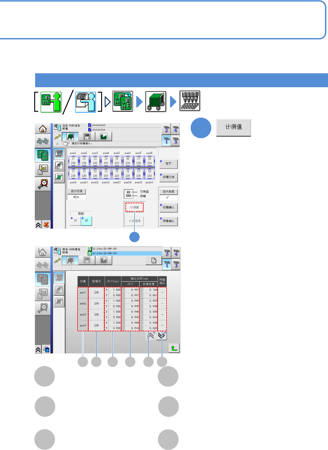 确认结果 吸嘴位置X、吸嘴位置Y