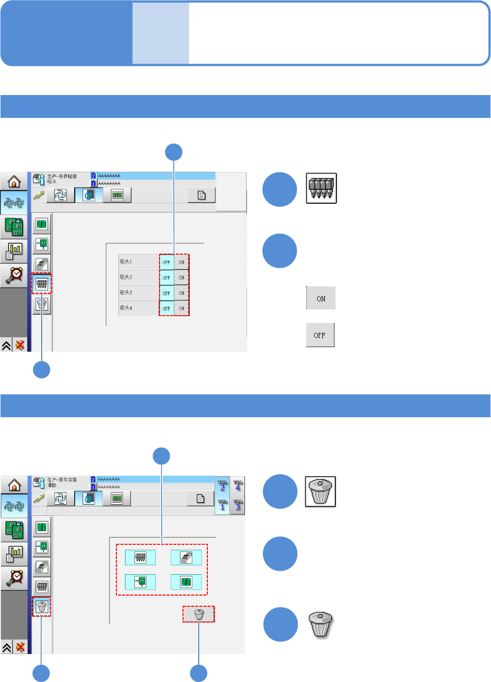 NPM - DX EJM8D C - MB - 03O - 00 部品で指定する ( トレイフィ ーダー ) 3-3-6 -5 个别 准备 贴装对象的指定 3 ( 条件 贴装 ) 操作 手册 3 - 3 - 6 2 1 2 2 2 1 3 指定贴装头 解除指定 1 1 3 选择各贴装头是否进行贴装 : 贴装 : 不贴装 选择解除对象 可以复数选择, 进行统一解除 。