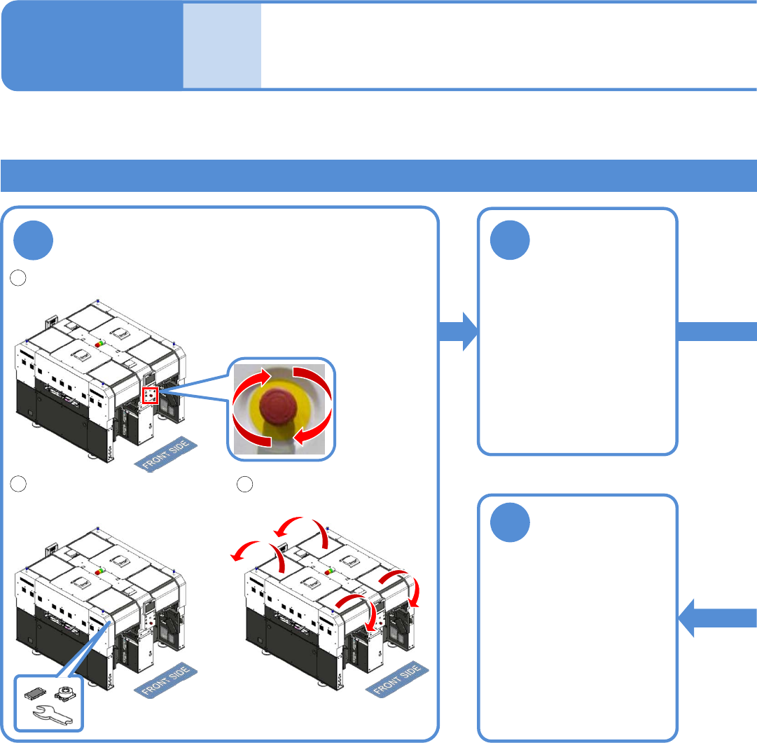 NPM - DX EJM8D C - MB - 04O - 00 OFF SERVO ON 4-1-1 -2 6 START 5 ■设定生产开始 位置 ( → 『 操作手册 』 P.4 -1- 2 ‘ 生产开始位置 的设定 ’) 4 7 3 ON 自我诊断后有异常 时 1 2 1 2 ACTIVAT IO N 进行自我诊断处理 ■有异常时, 显示异常项目 。 ■没有异常时 进行原点复位。 开始生产 ●在 OFF 状态下,经过 10 秒 …