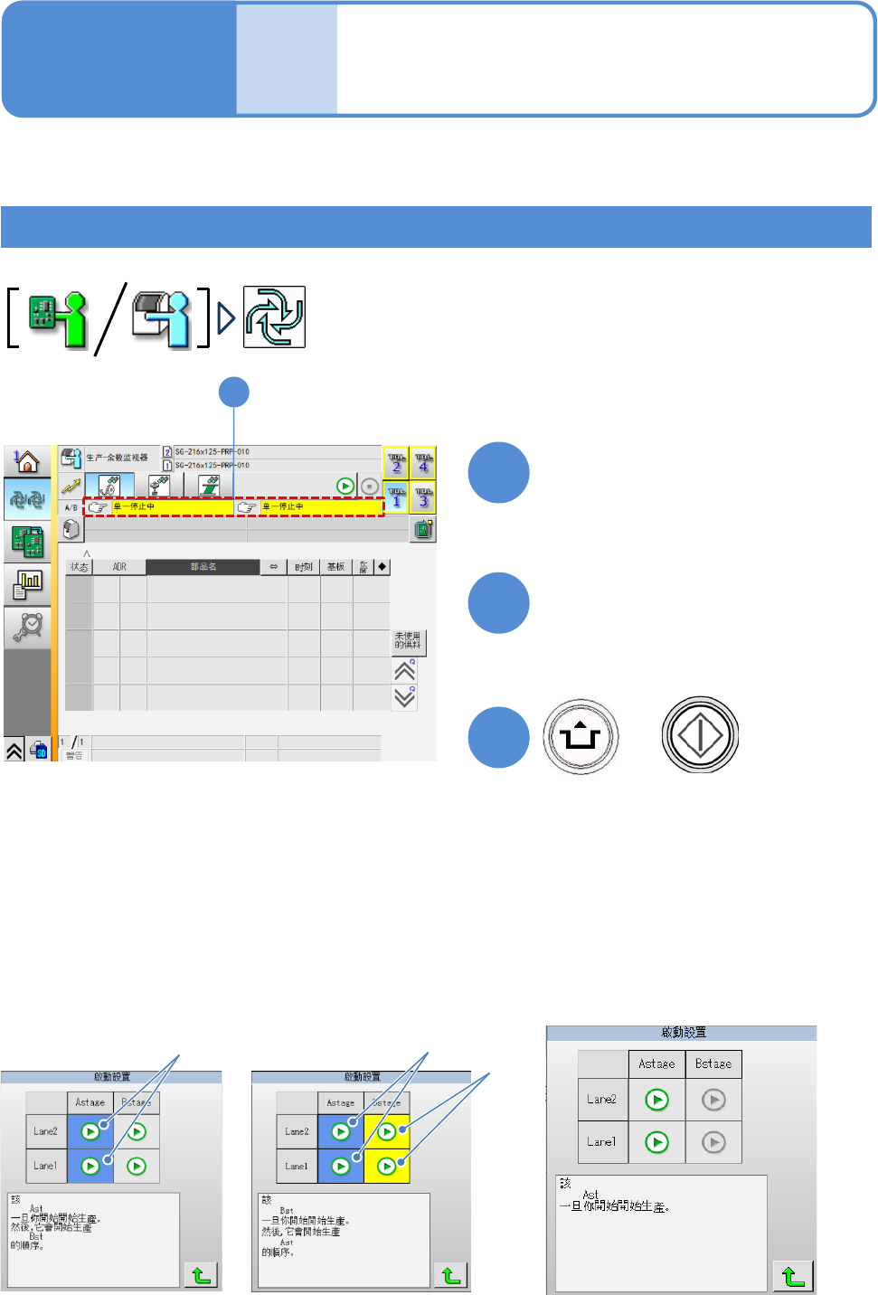 这里对单一停止或者循环停止时再开始生产的方法进行说明。