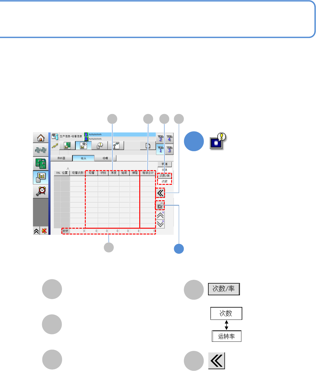 所有供料器的吸着次数和错误次数的合计,
