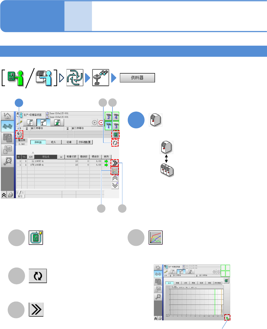 ●显示供料器的元件的吸着状况。