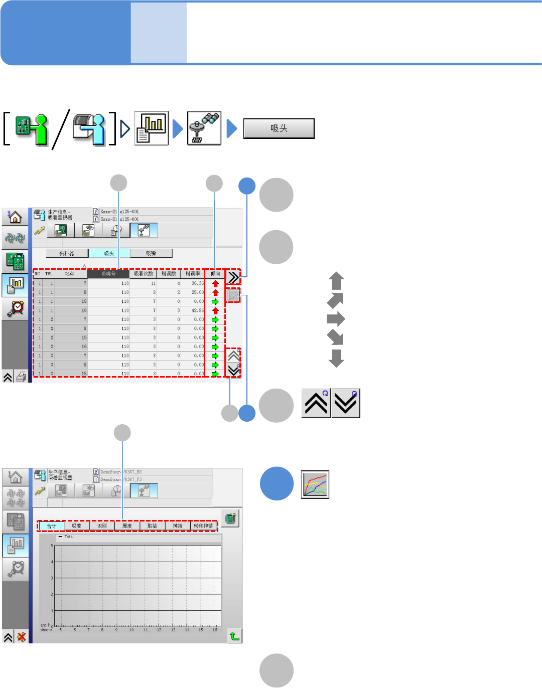 NPM - DX EJM8D C - MB - 04O - 00 4-2-9 -2 A B C 各供料器的吸着信息 ( → 『 操作手册 』 P.4 -2- 1 -8 ) 2 A B C 返回原来画面。 选择表示的种类 。 ( 显示错误的详细信息 )