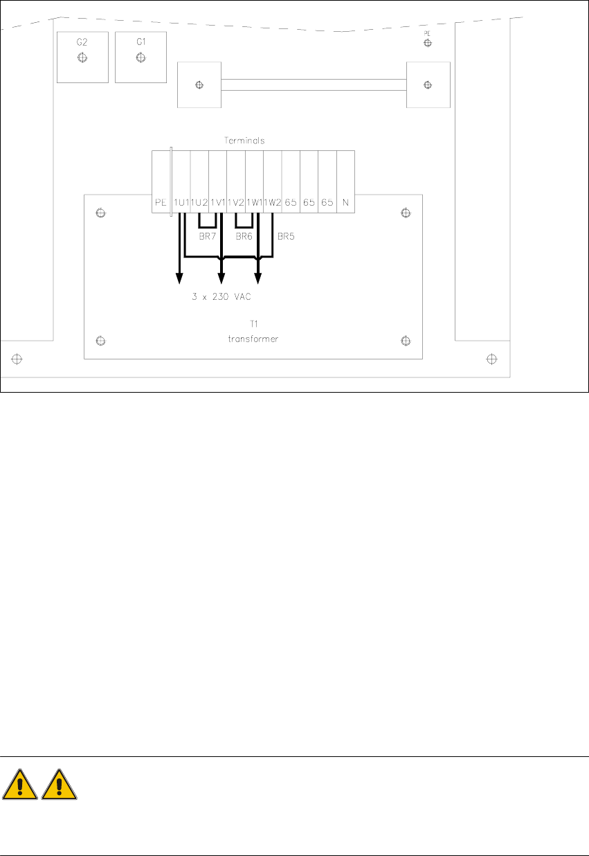 Fig. 8 - 3 Wafflepack changer transformer T1, connection: 3 x 230 VAC