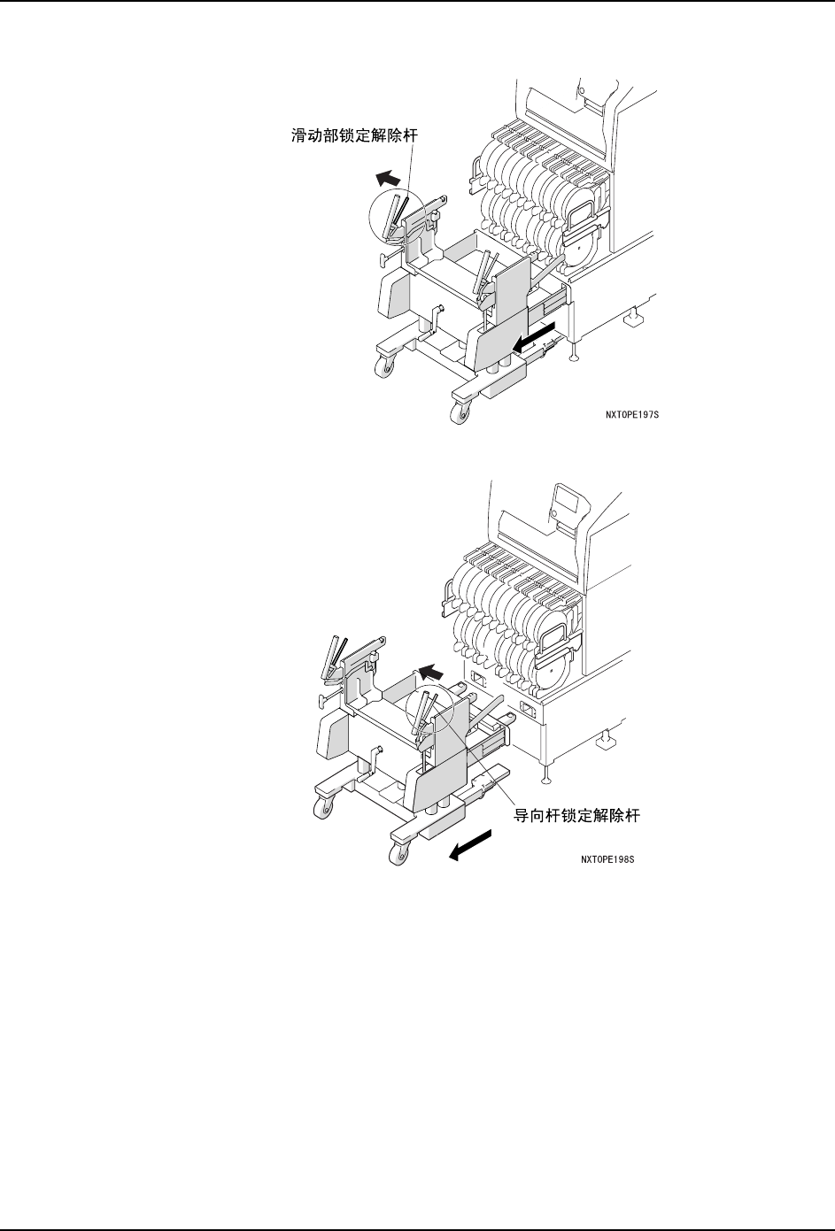 6. 请握住滑动锁定解除杆,使 PCU 本体向后方滑动。