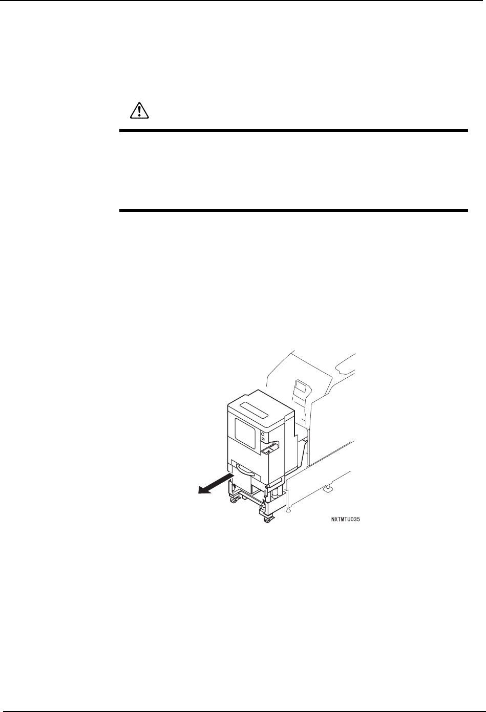 6. 小心地移出料盘单元 -L 后将脚轮锁定。