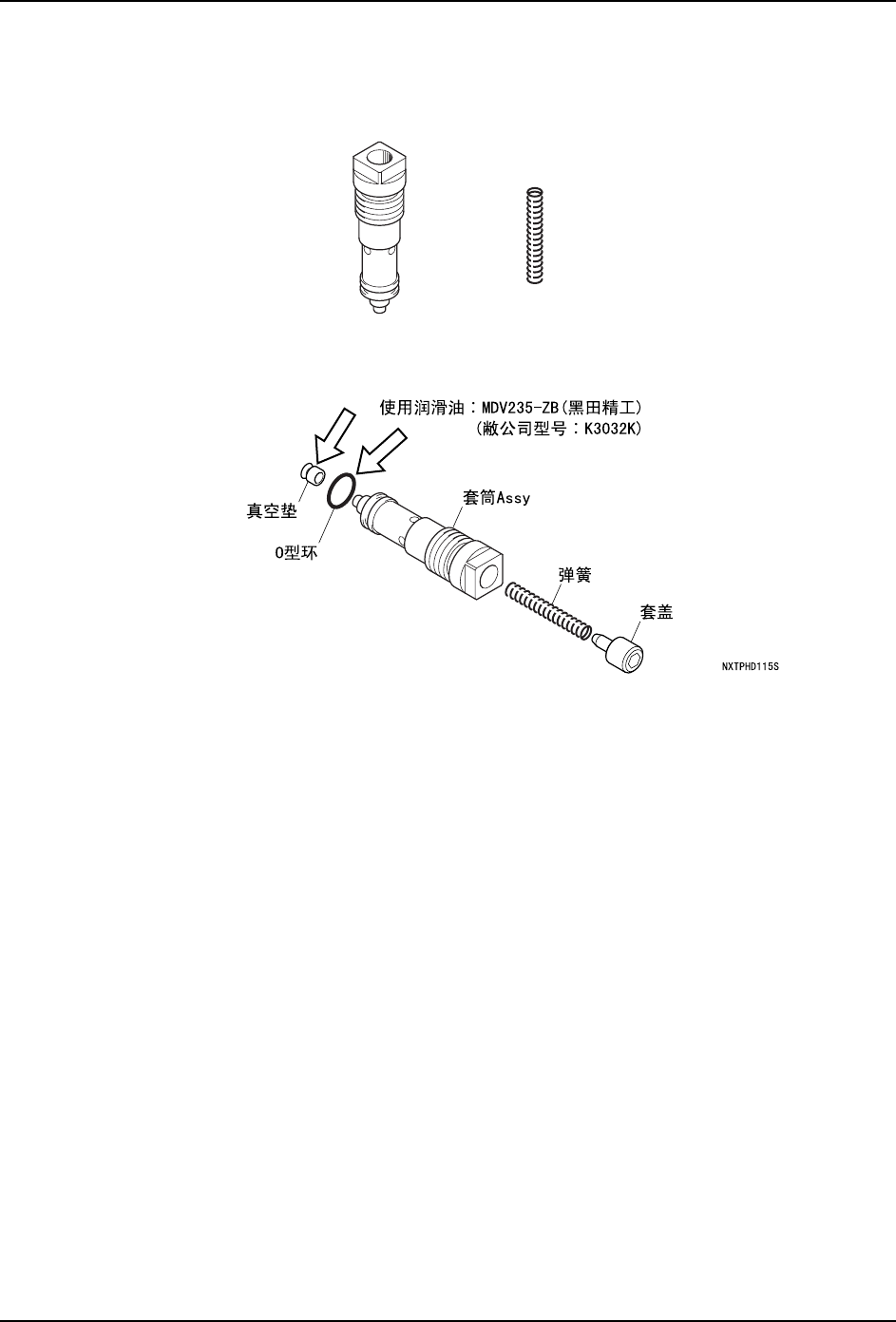 10.清扫后组装分解的套筒 Assy。此时,请在 O 型环和弹簧上轻轻地涂抹润滑油。组装后请